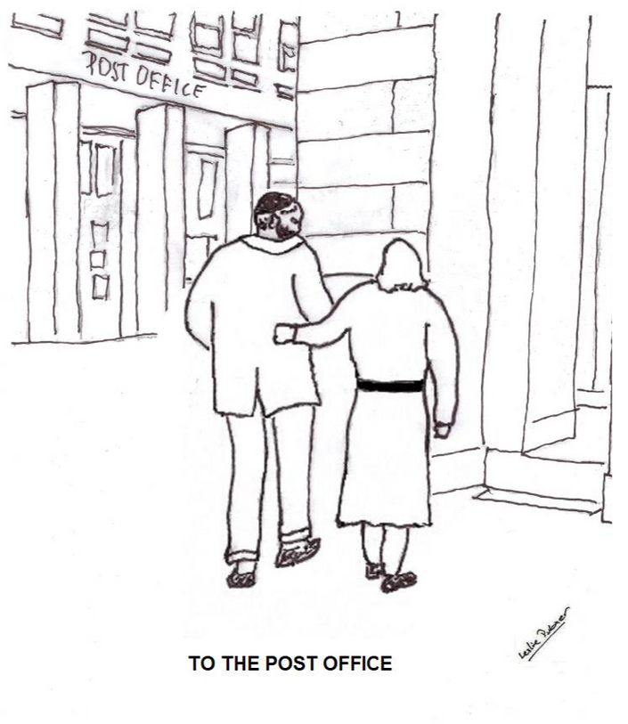 In later life, Leslie co-edited his local synagogue's magazine, the Kingsbury Courier. As well as contributing to the writing of the magazine, Leslie drew the illustrations and designed the front page of each issue.